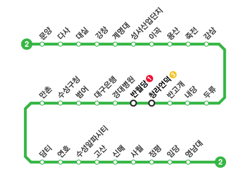 🚉 대구 지하철 2호선 전체 노선도 보기