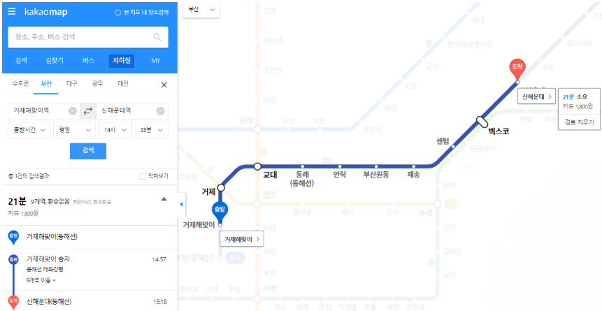 - 주요 환승역인 벡스코역이나 거제해맞이역 등은 환승거리가 꽤 길 수 있으니 환승 시 여유 있게 이동하는 것이 좋습니다.