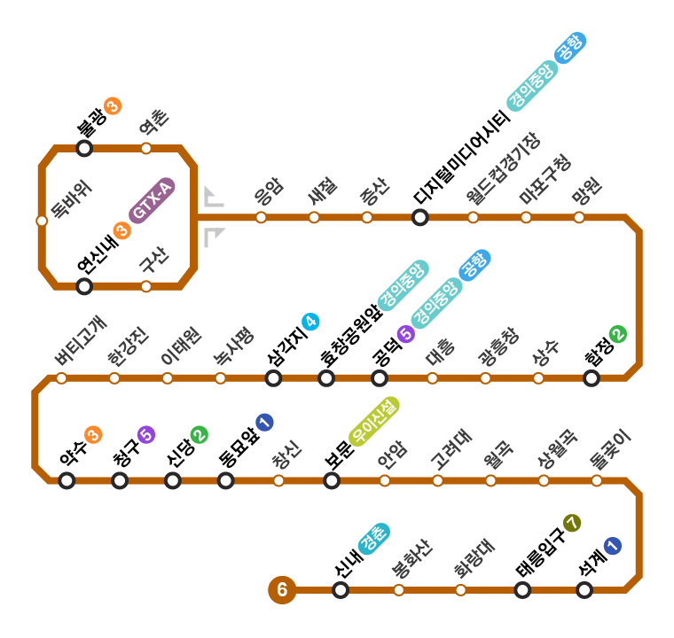 서울 지하철 6호선은 서울의 북서부 응암역에서 시작해 마포구, 용산구, 동대문구 등 서울의 핵심 지역을 지나 동북부 신내역까지 이어지는 중요한 노선입니다.