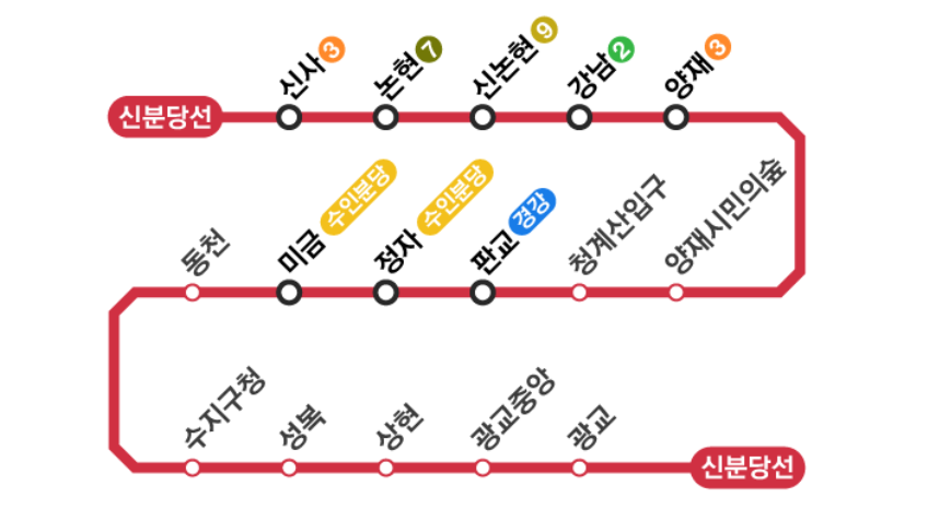 ✅ 신분당선은 서울 신사역에서 출발해 강남역, 양재역을 지나 성남시 판교, 정자, 용인 수지를 거쳐 수원 광교까지 이어지는 수도권 광역철도입니다.