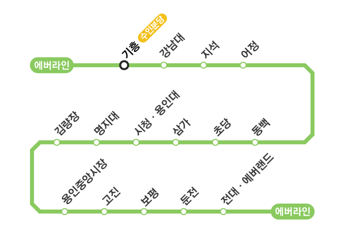 - 기흥역: 분당선 환승 가능, 서울과 수도권에서 에버랜드로 이동하는 주요 환승역입니다.